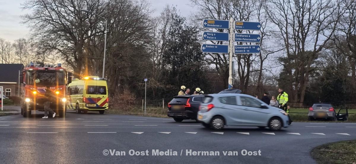 Een auto is vrijdagmiddag in de sloot beland na een botsing met een andere auto in Vries. De voertuigen botsten op de kruising van de Noordenveldweg met de Molenstraat en Veenweg met elkaar. Een van de betrokkenen is behandeld door ambulancepersoneel, maar hoefde niet mee naar het ziekenhuis. De auto die in de sloot terechtkwam raakte flink beschadigd. Bron Tekst: Mediahuis Noord