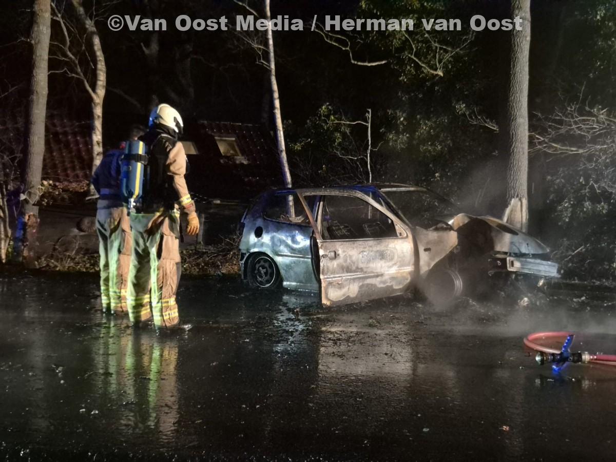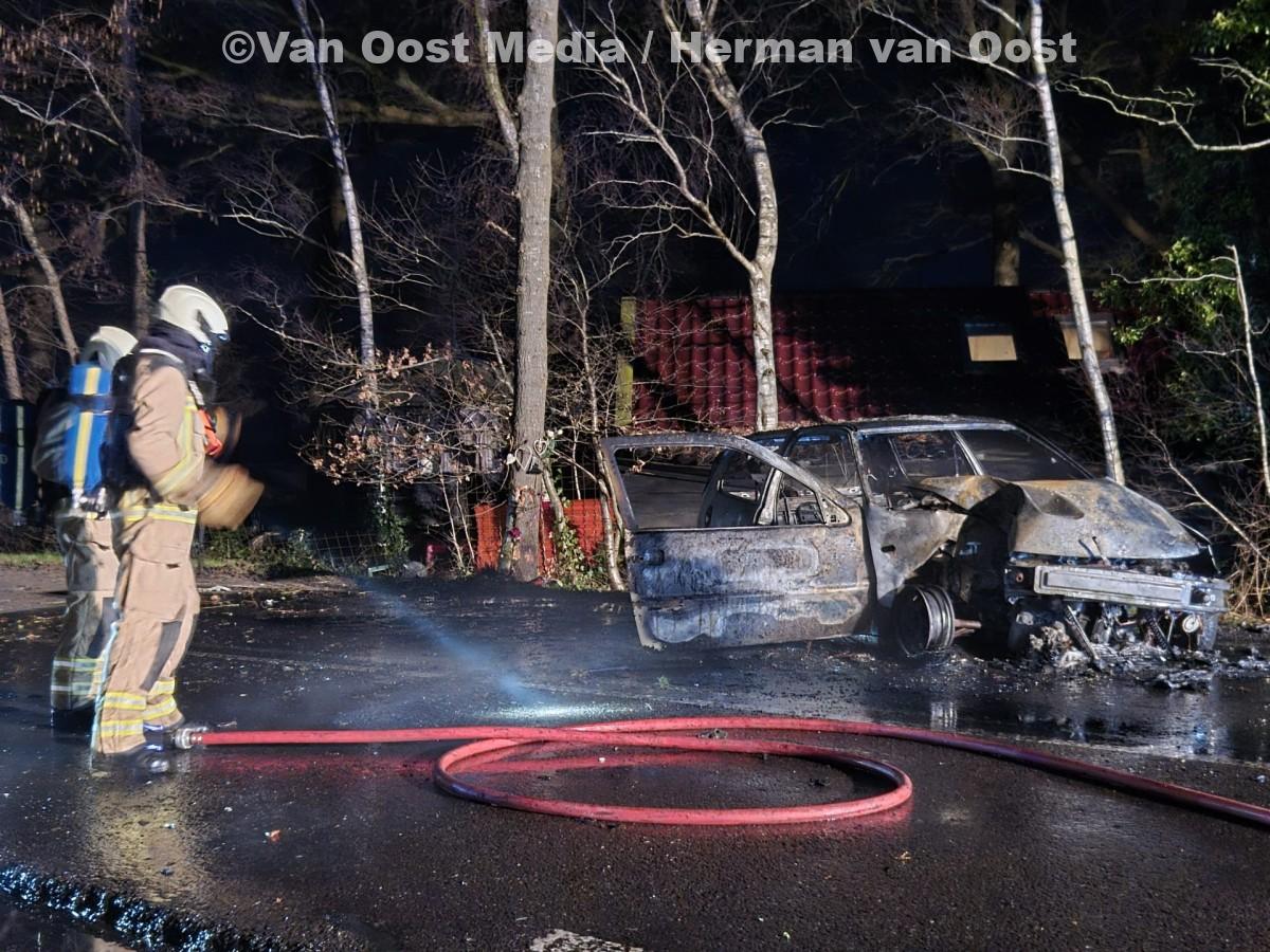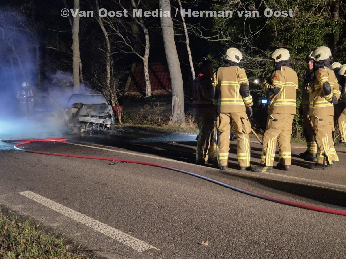Politie, brandweer en ambulance kwamen met spoed ter plaatse. Bij aankomst stond de auto in lichterlaaie. De brandweer wist het vuur snel onder controle te krijgen, maar het voertuig raakte zwaar beschadigd.