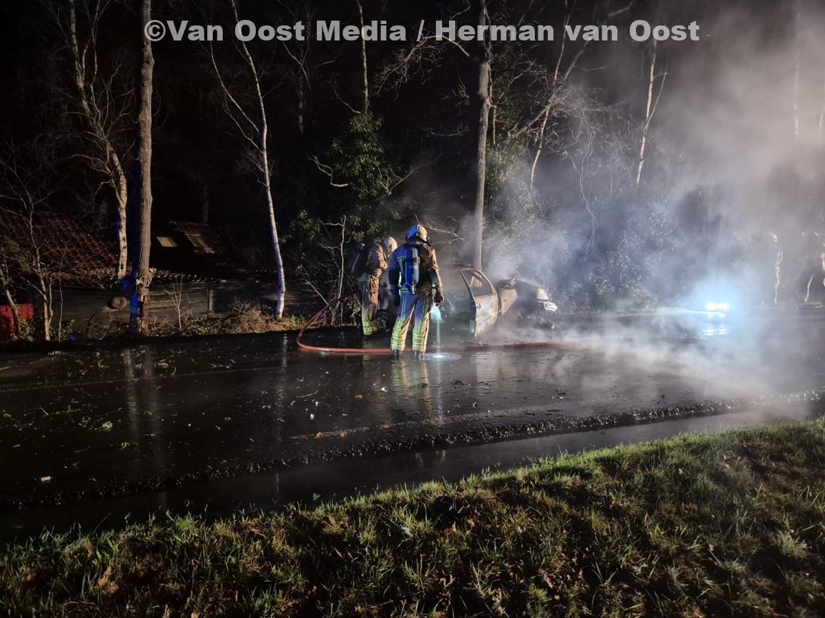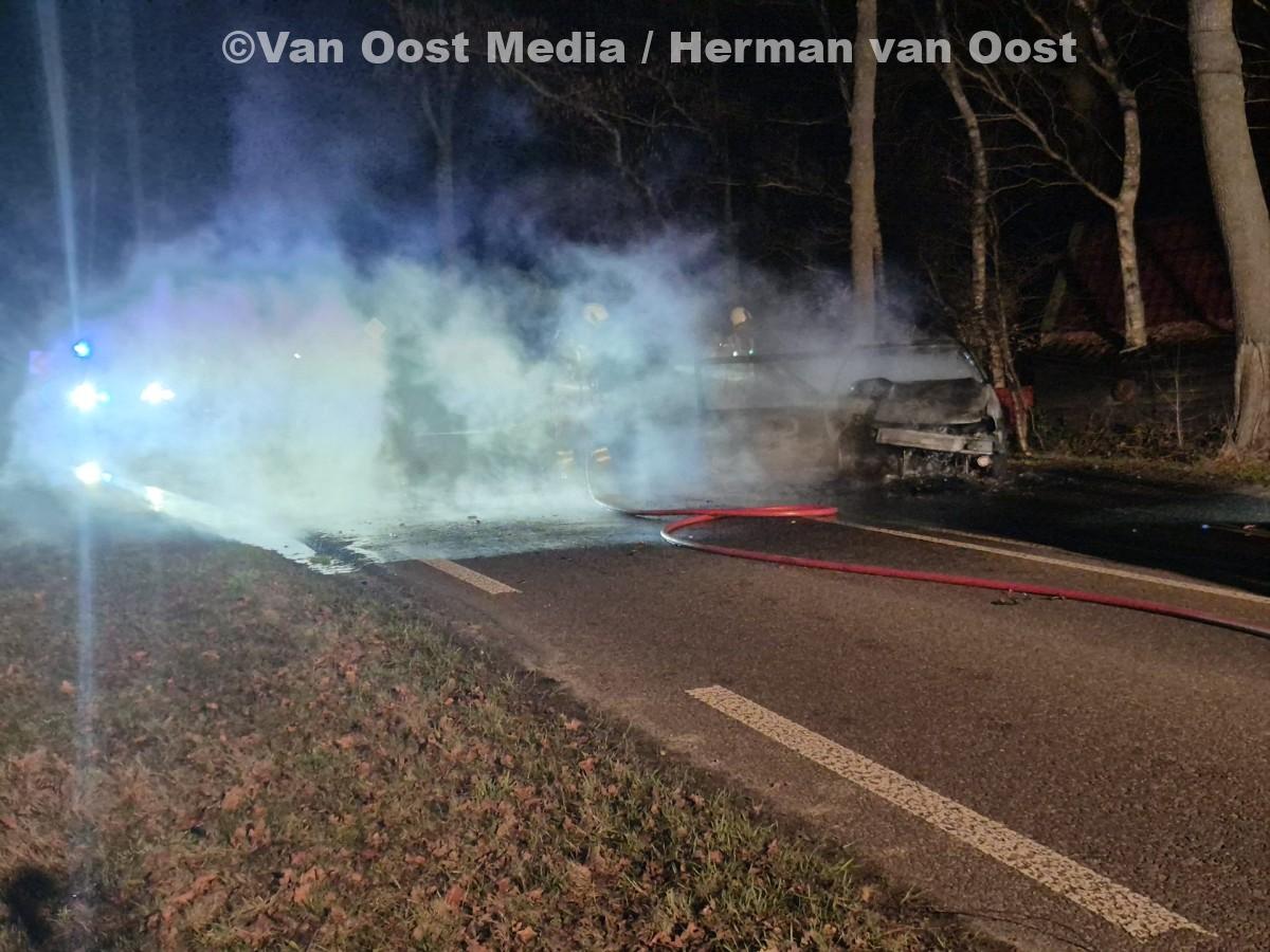 HUIS TER HEIDE – Rond 20:50 uur dinsdagavond is op de N919 (Kolonievaart) in Huis ter Heide een auto tegen een boom gebotst. Door de impact vloog het voertuig in brand.