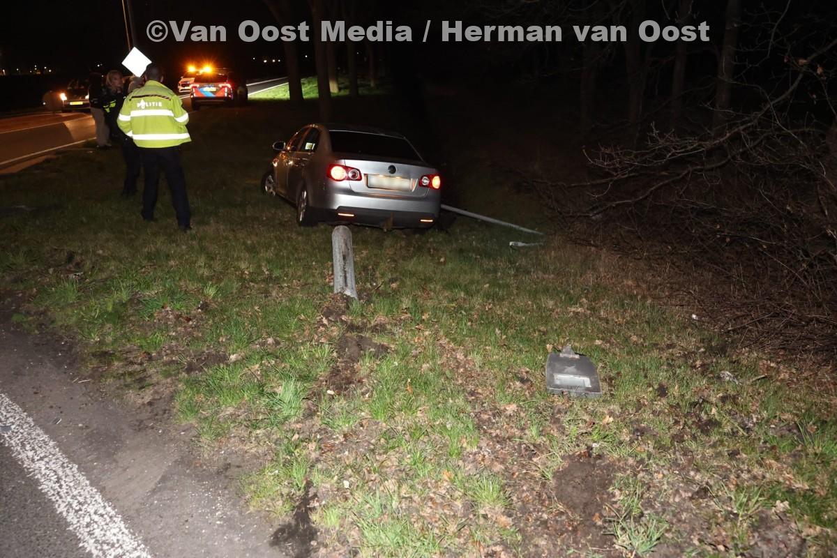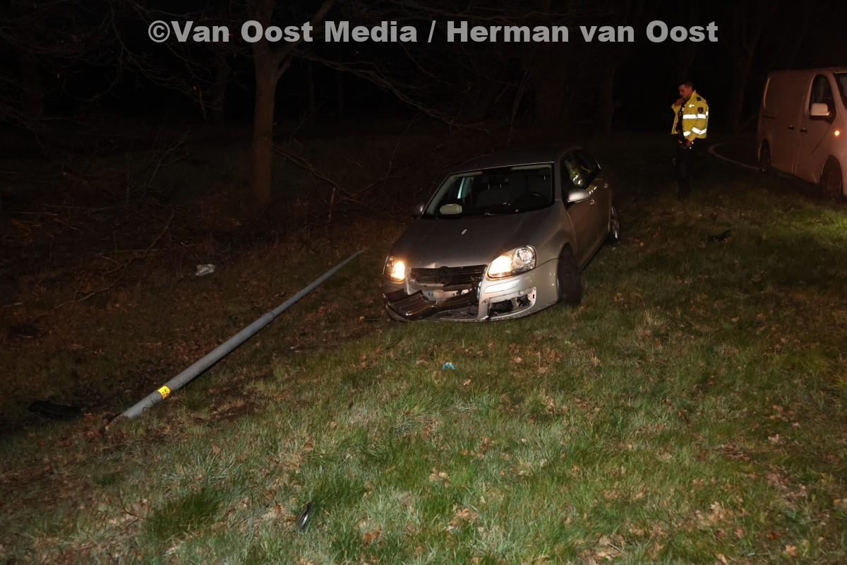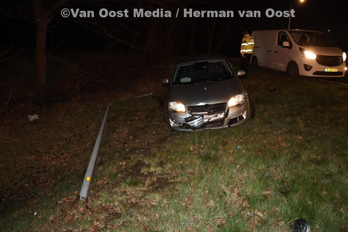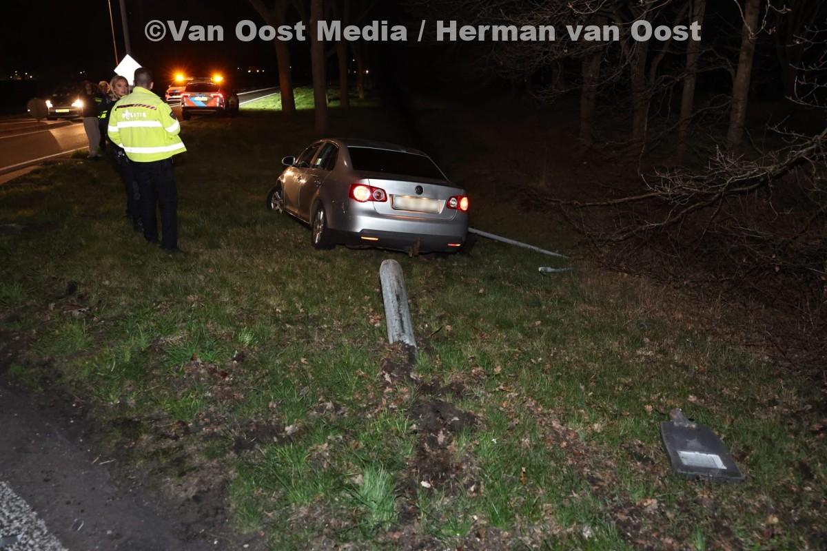 Hierbij nam hij een lantaarnpaal mee en kwam in de berm tot stilstand.