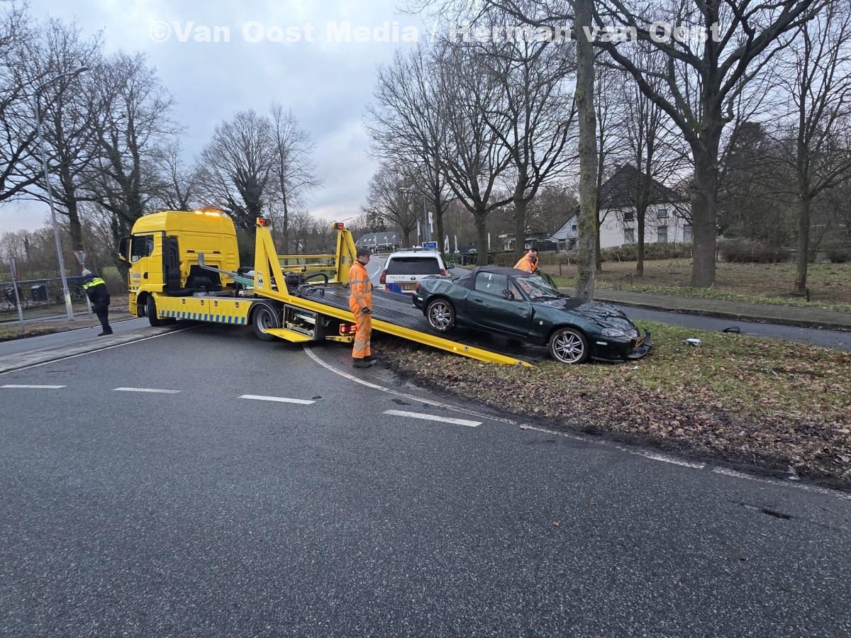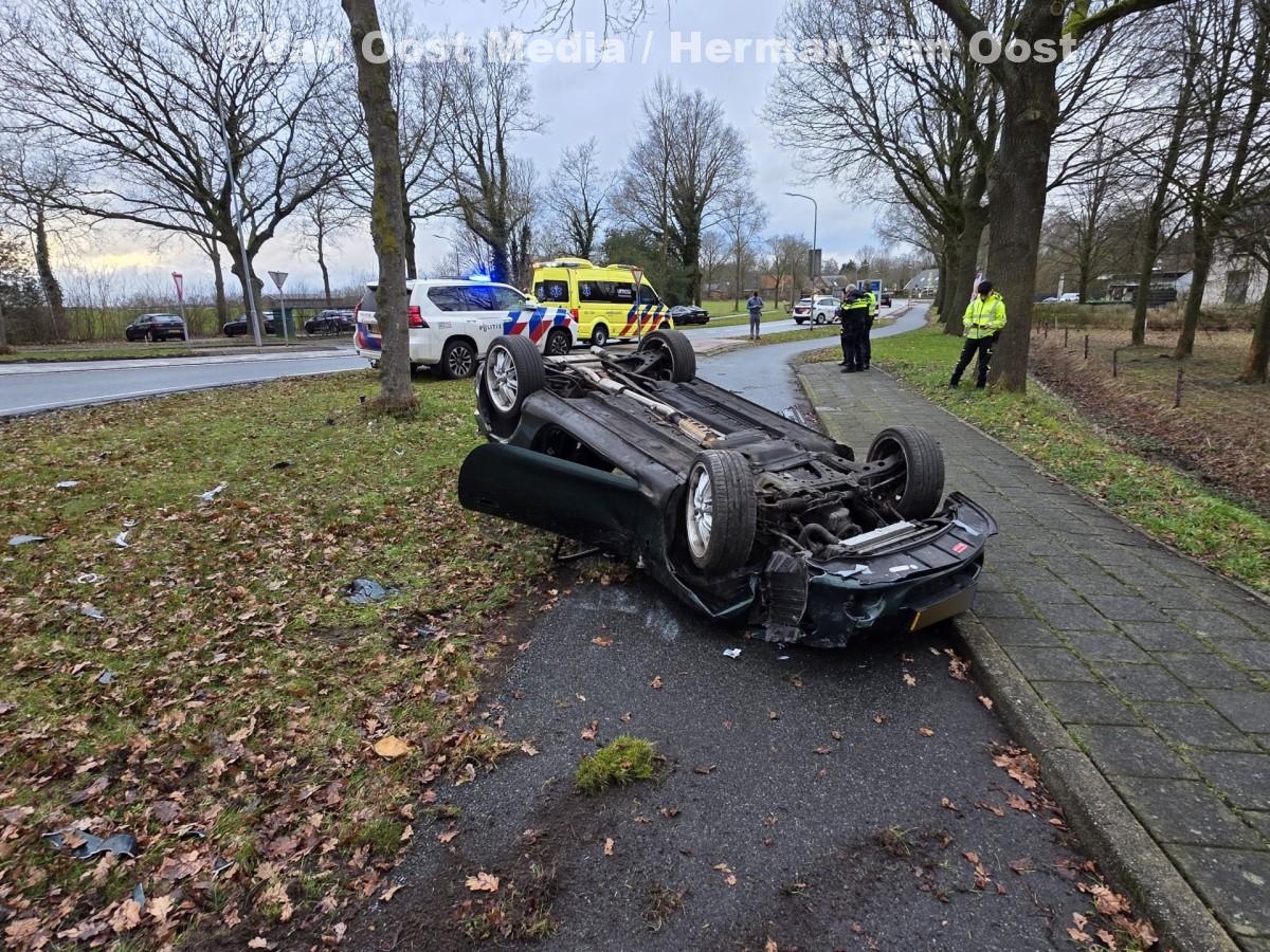 De bestuurder van een auto raakte op de rotonde van de Ir. van Veelenweg in Gasselte de macht over het stuur kwijt.