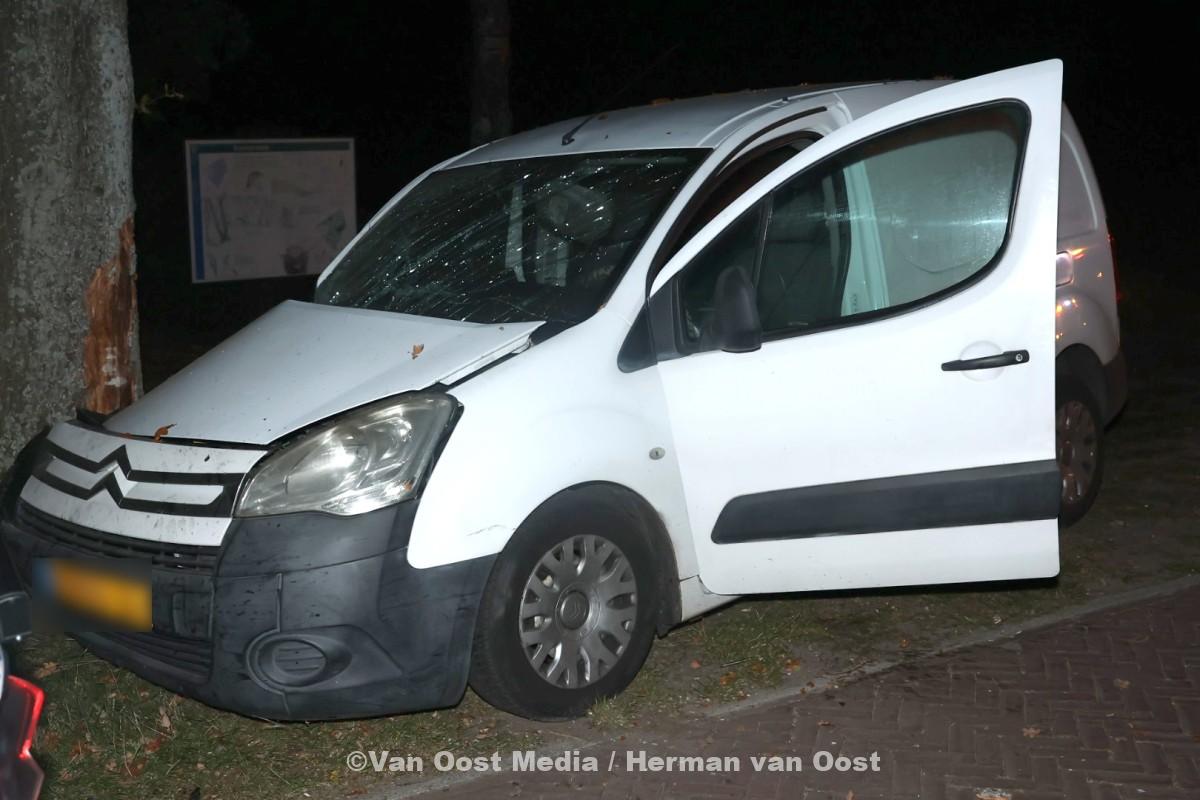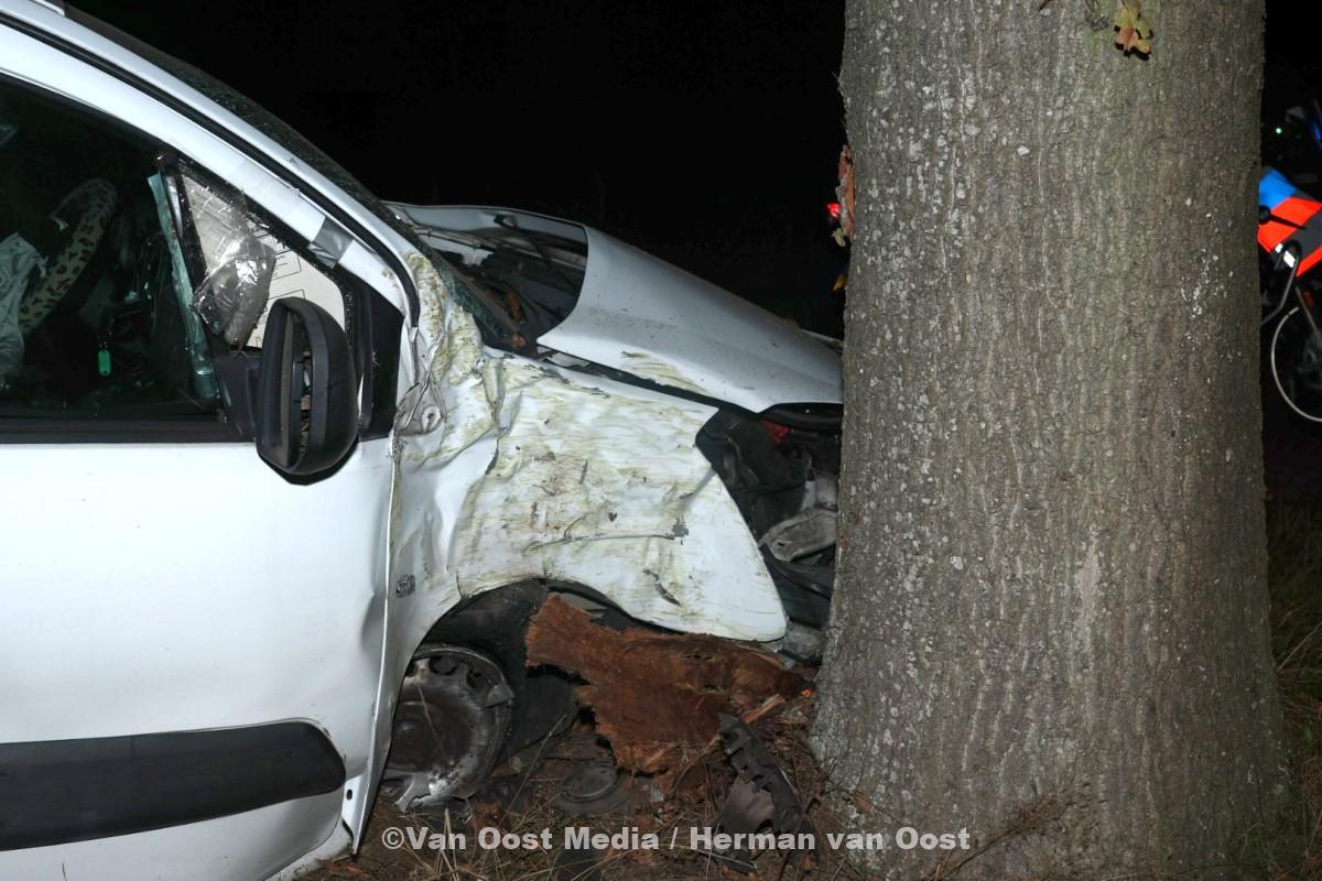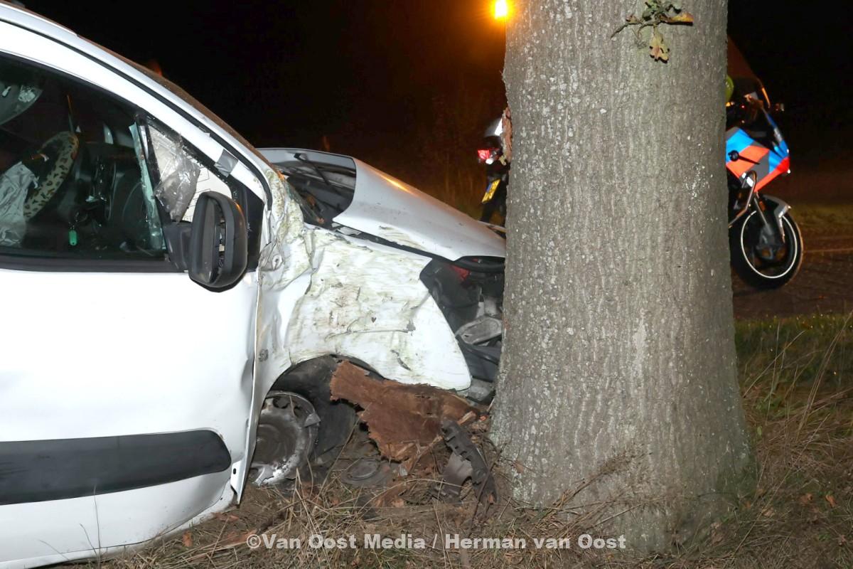 Hier was in een flauwe bocht door onbekende oorzaak een auto tegen een boom gebotst.