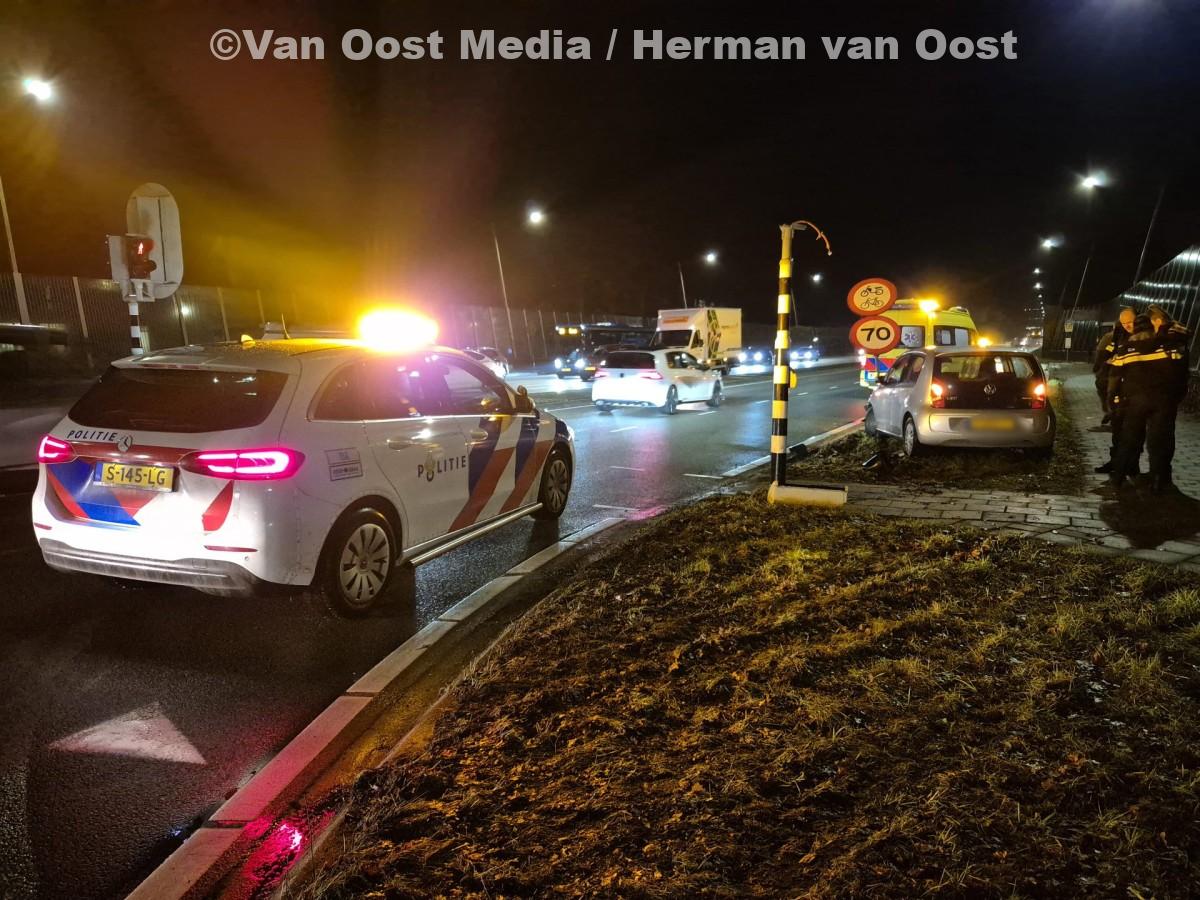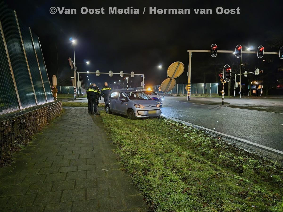 Op de Europaweg-West in Assen is maandagavond rond 19.35 uur een auto uit de bocht gevlogen.