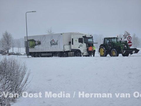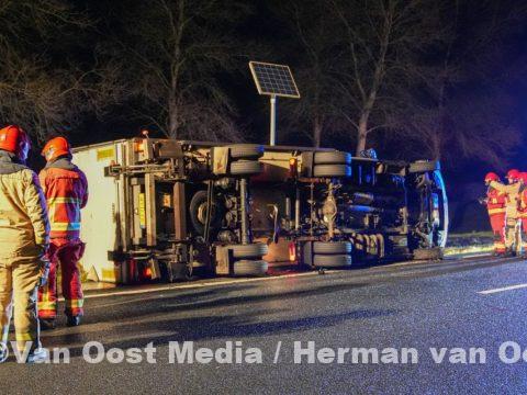 Vrachtwagen op zijn kant bij Gieterveen N33
