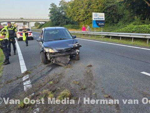 Drie voertuigen betrokken bij kopstaart botsing N33 afrit Gieten