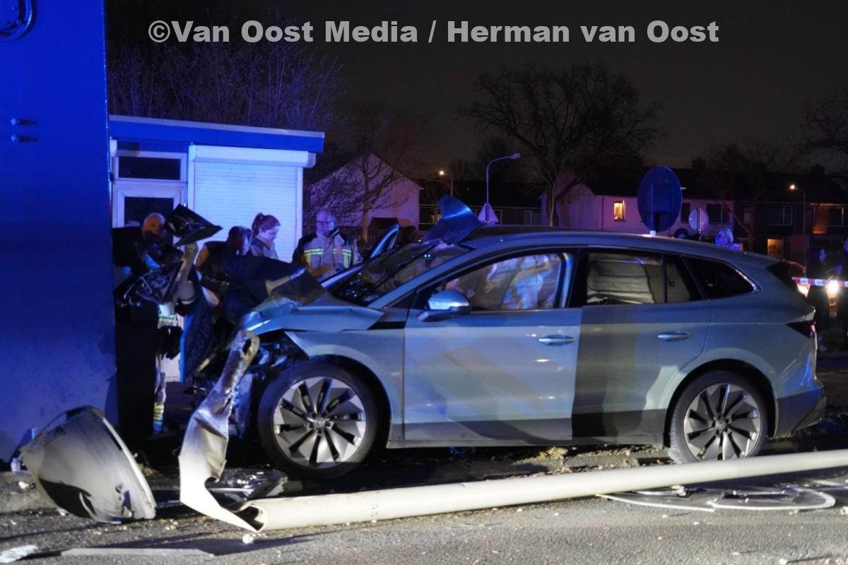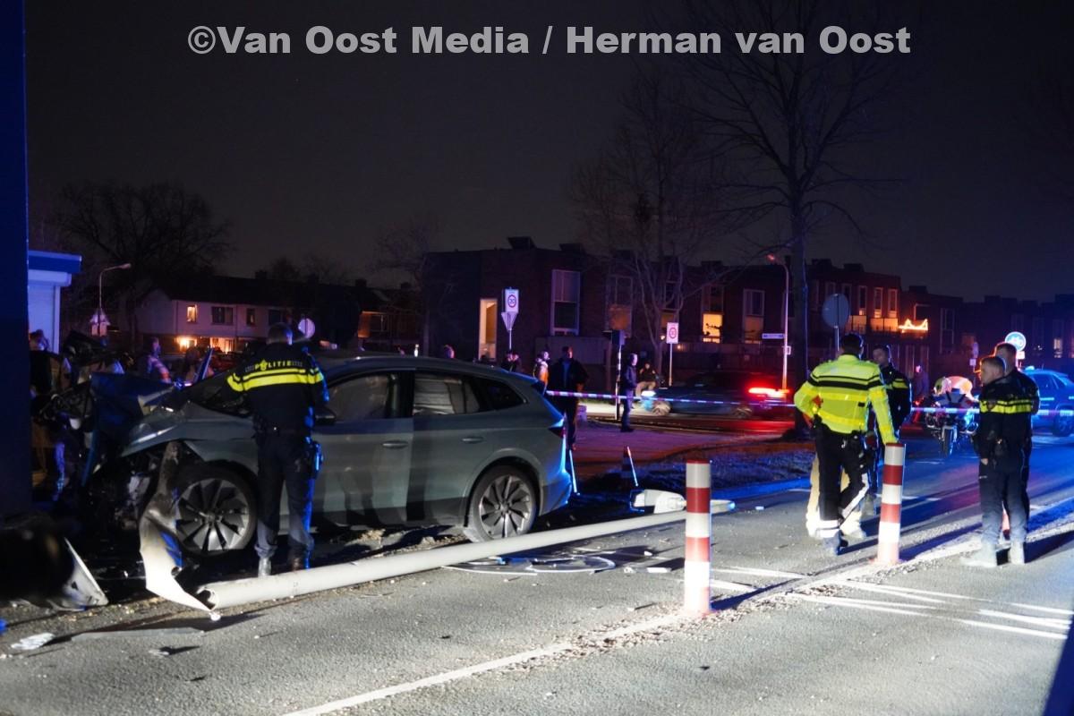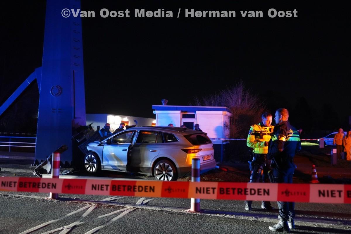 Elektrische auto botst tegen Edisonbrug in Hoogeveen, slachtoffer naar ziekenhuis