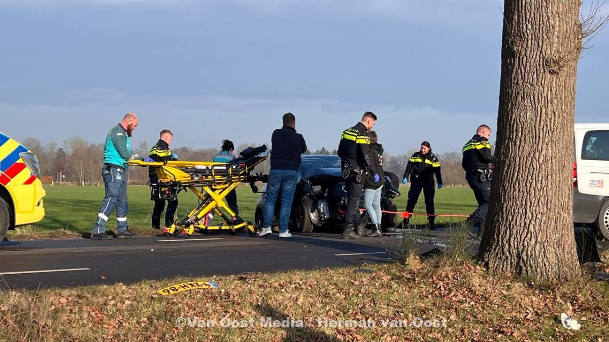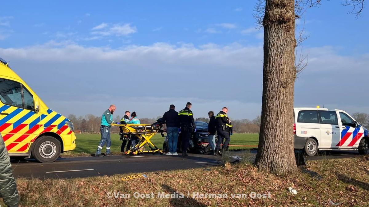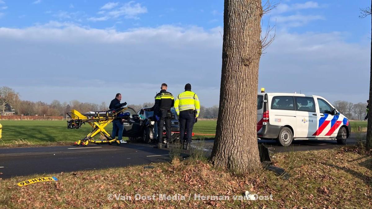 Op de Coevorderstraatweg in Noordscheschut is een auto tegen een boom gereden door onbekende oorzaak.
