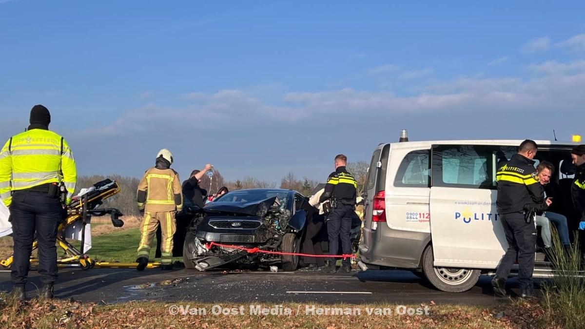 Hulpdiensten zijn massaal aanwezig, ook is de traumahelikopter vanaf Eelde aanvliegend.