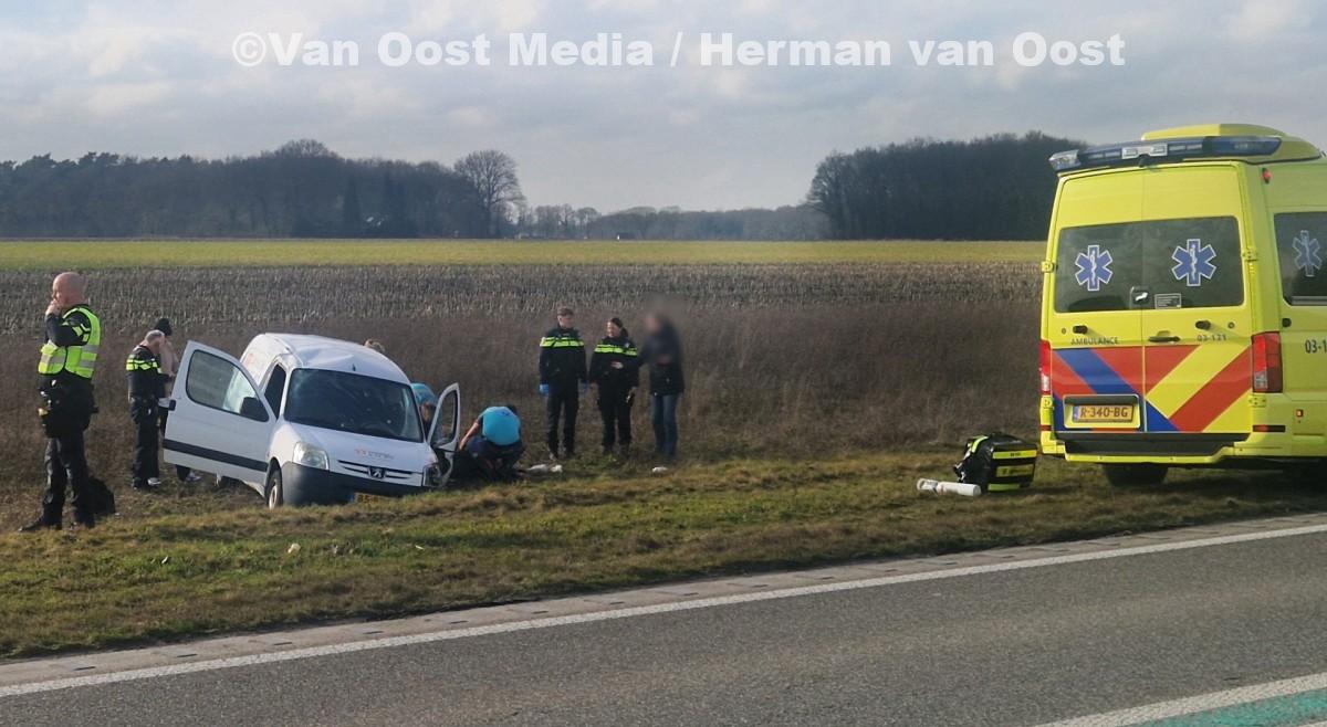 Een automobilist is daarbij over de kop geslagen en in een naastgelegen weiland terechtgekomen.
