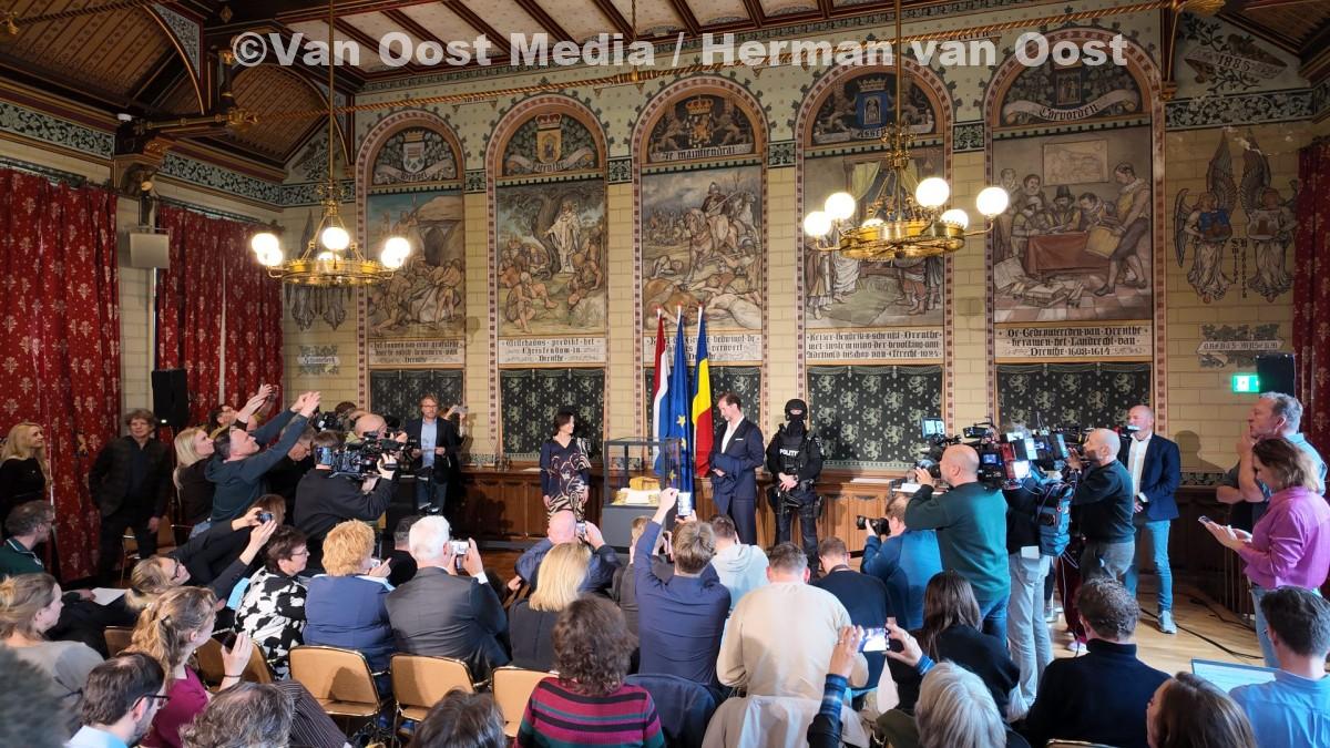 De totale Nederlandse en Roemeense pers had zich rond 14.00 uur verzameld bij het Drents museum.