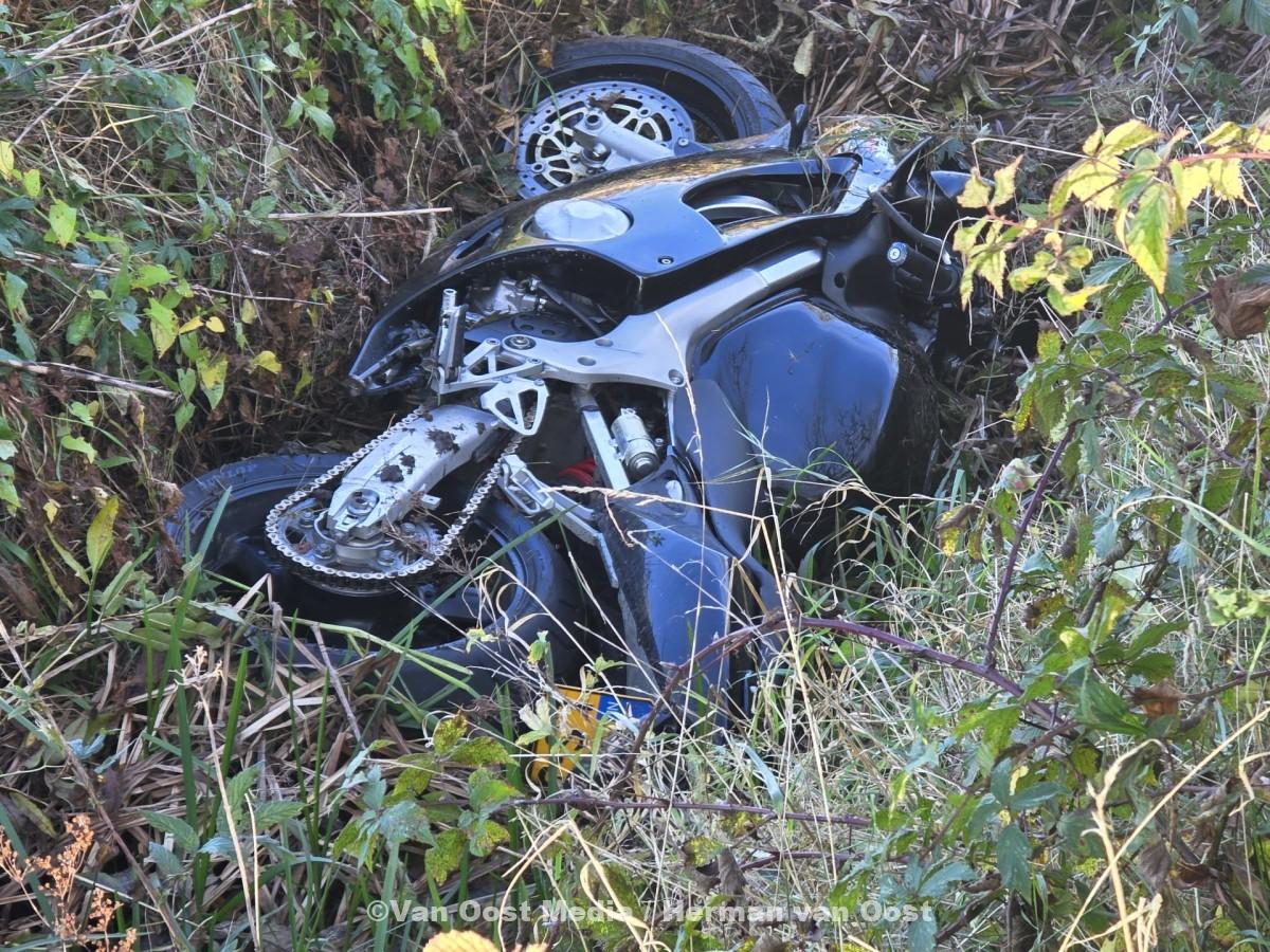 De zwaar beschadigde motor is geborgen door berger Hamstra uit Tynaarlo.
