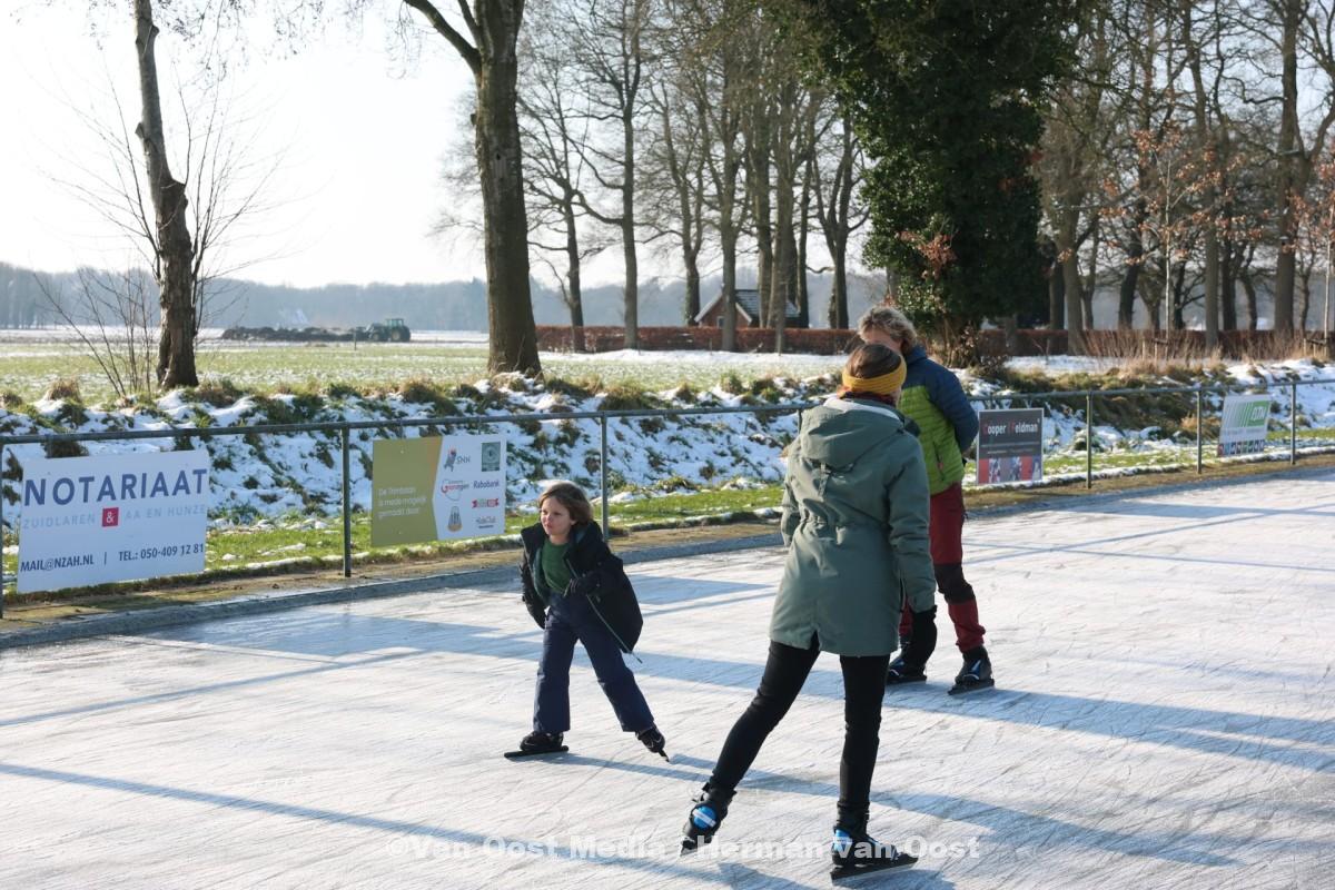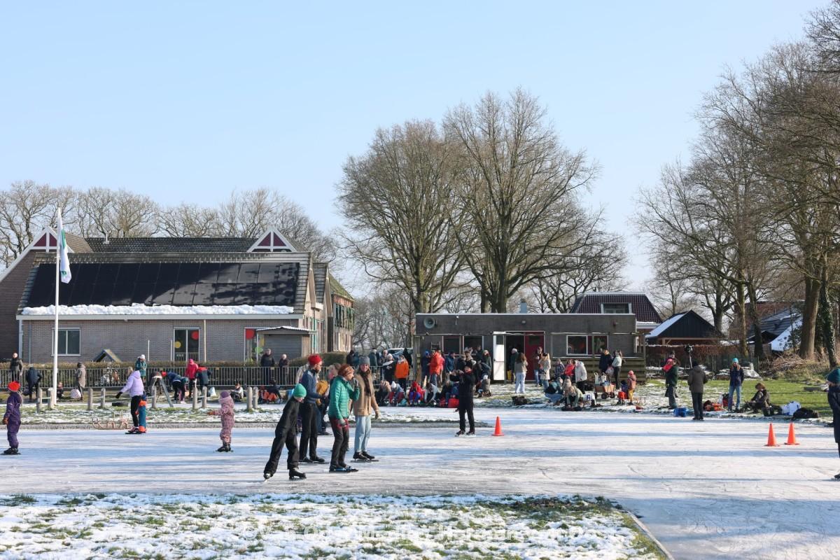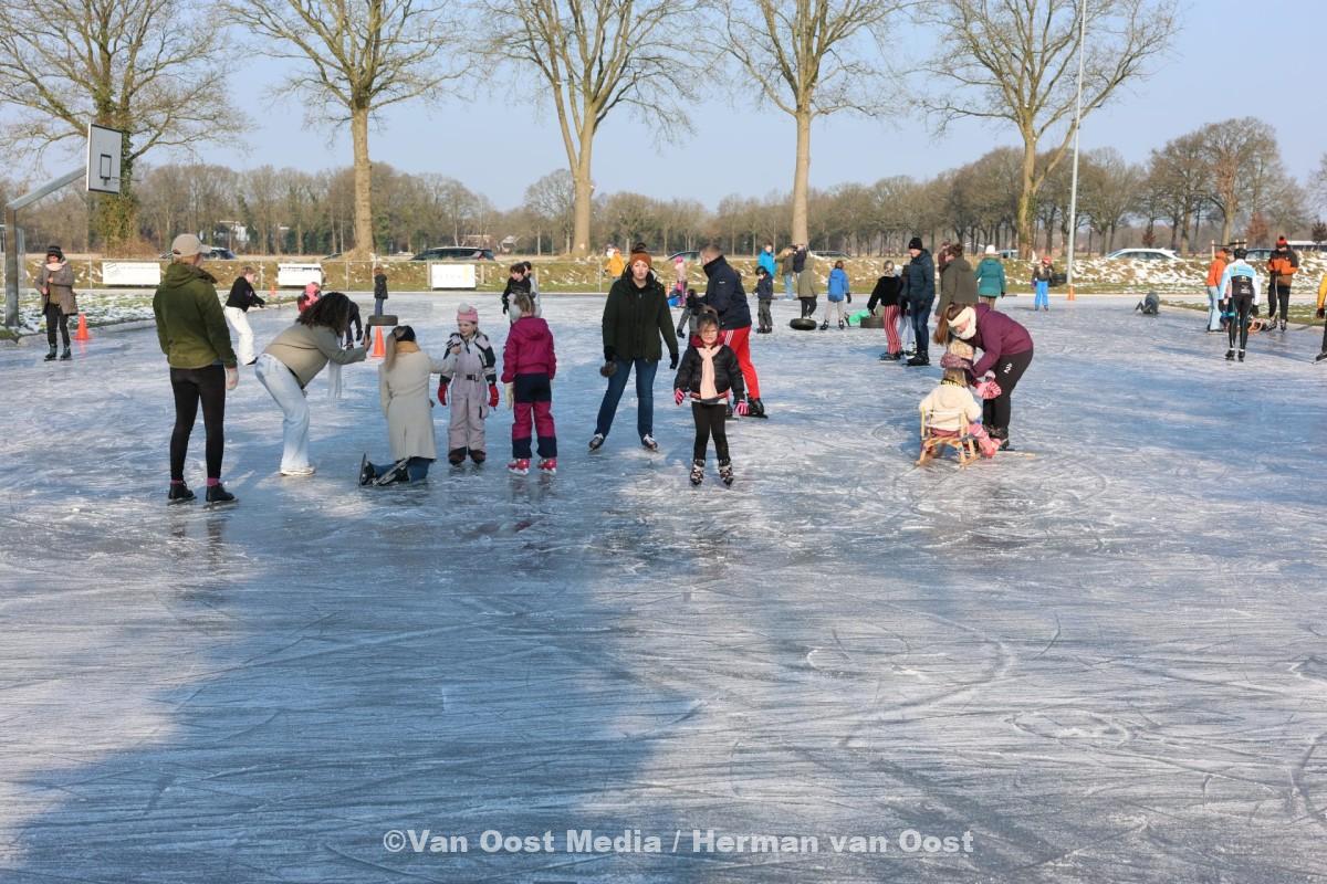 In Noordlaren is afgelopen nacht hard gewerkt om de inwoners een momentje van schaatsplezier te gunnen vandaag. Op de ijsbaan is een laagje water gesproeid.