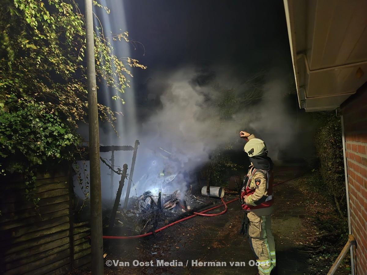 Een schuurtje achter een woning aan de Venestraat in Assen is in de nacht van maandag op dinsdag afgebrand. De bewoner ondernam samen met de politie de eerste bluspogingen. De brandweer  kwam, sloegen de vlammen al metershoog de lucht in. De politie houdt rekening met brandstichting en doet onderzoek.