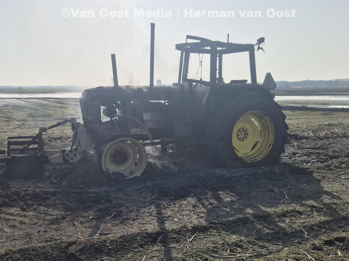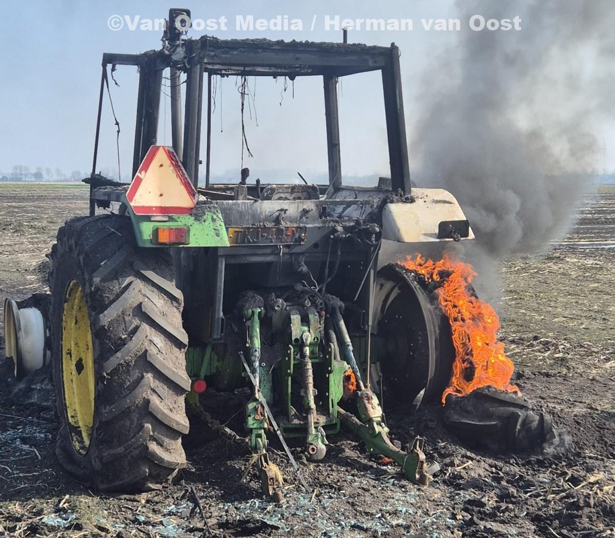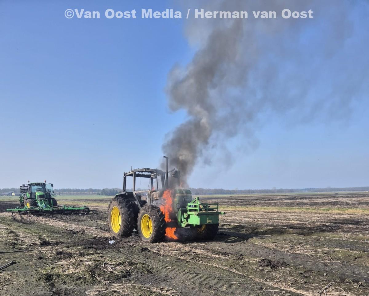 Tijdens werkzaamheden op een akker heeft door nog onbekende oorzaak een tractor vlam gevat.