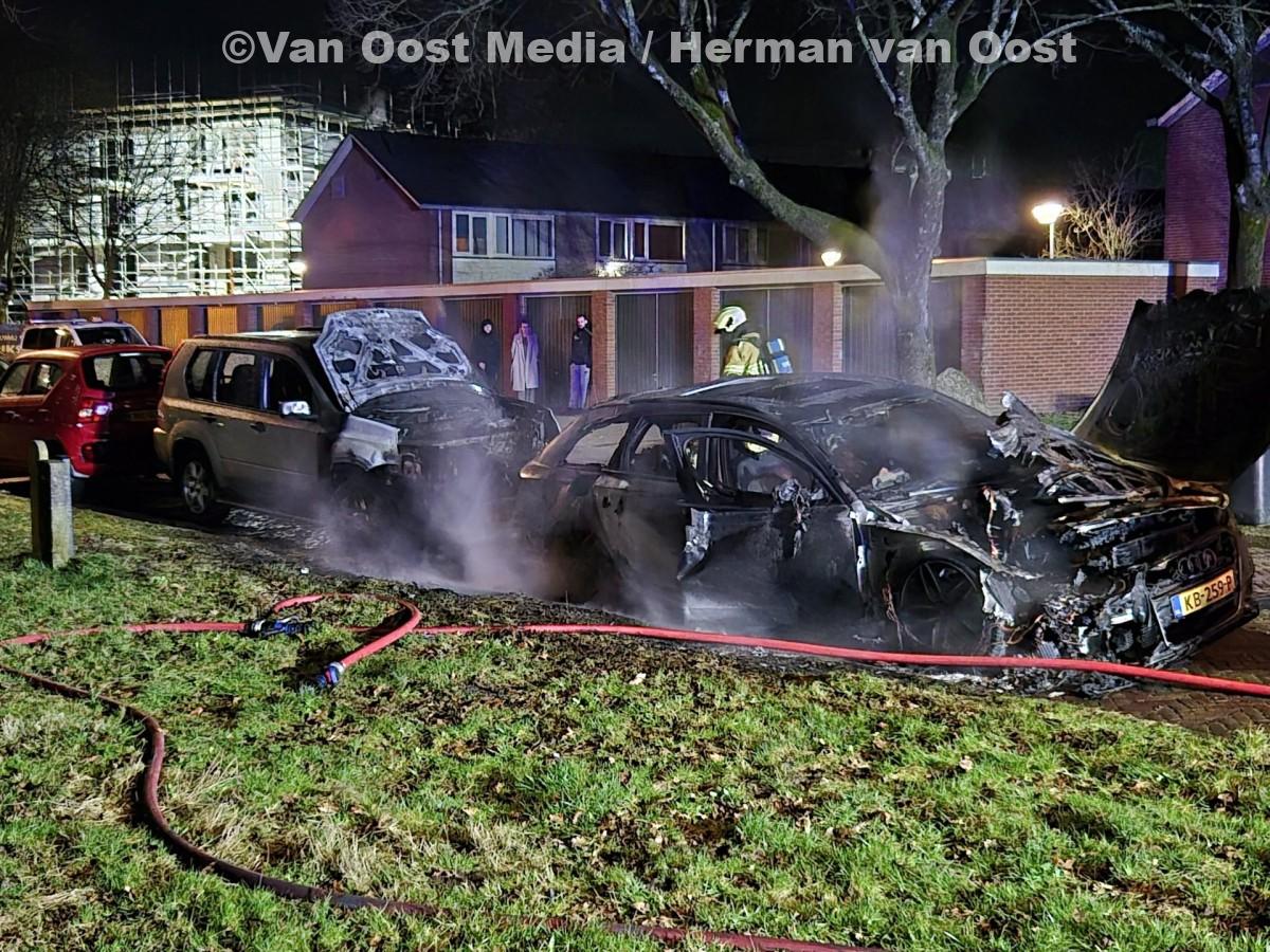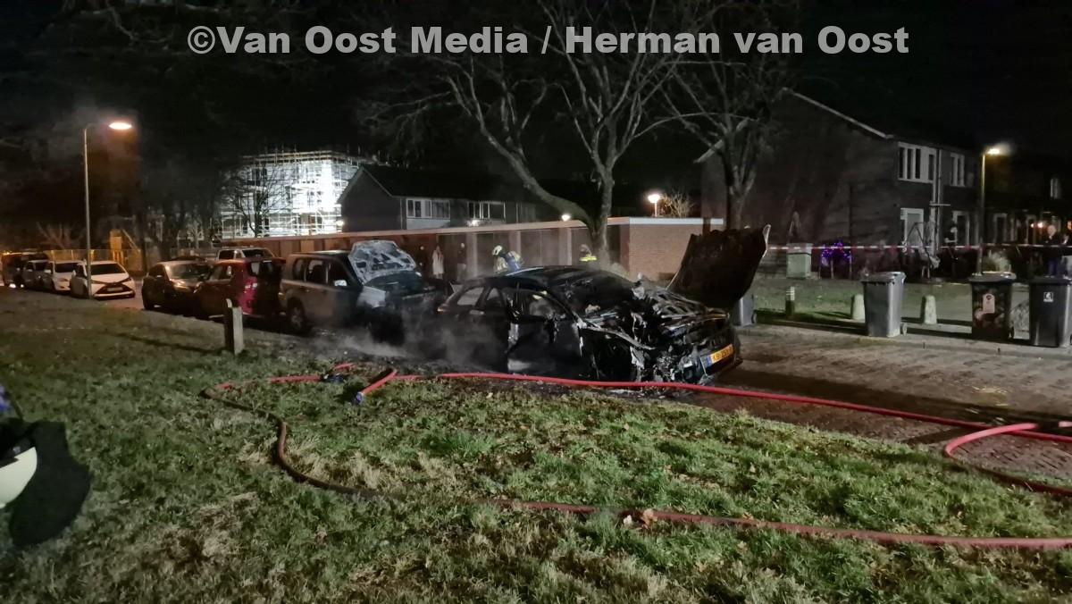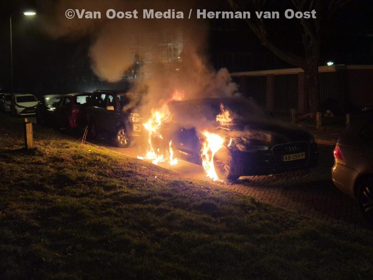 Hier stond een auto in brand op een parkeerplaats maar door de hitten vatte ook de daarachter staande auto vlam.